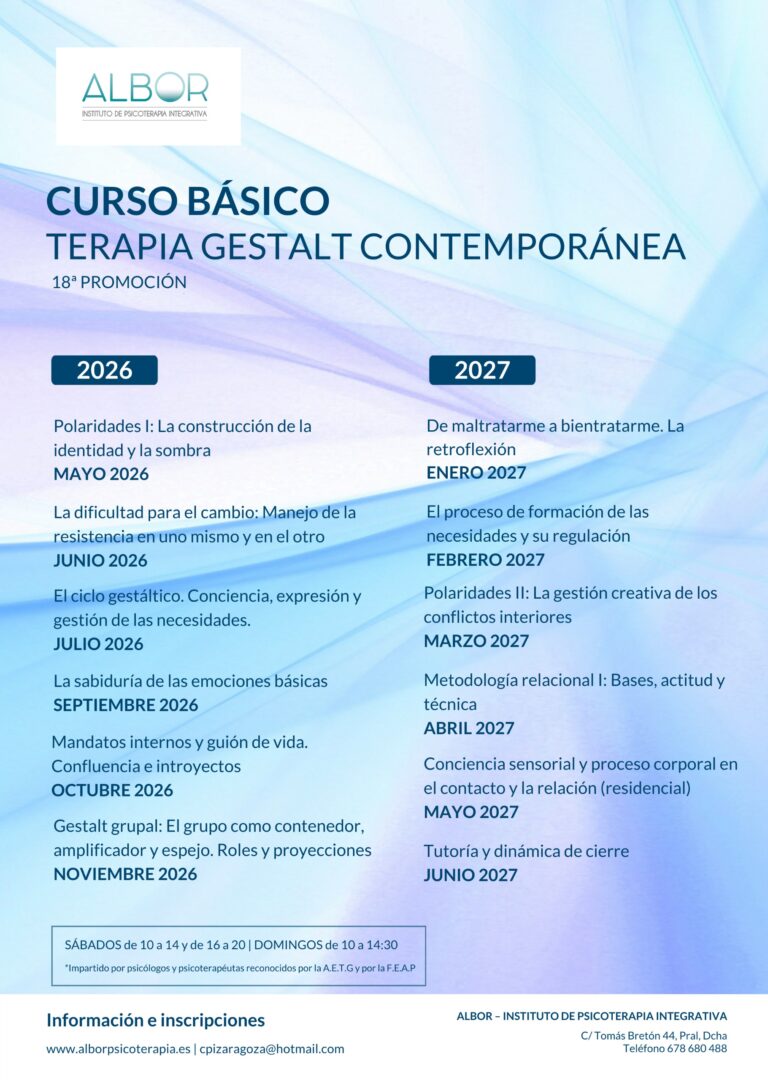 Un año más, iniciamos una nueva edición de nuestra formación en Terapia Gestalt Contemporánea. Este año, como novedad, puedes incorporarte de manera inmediata a las